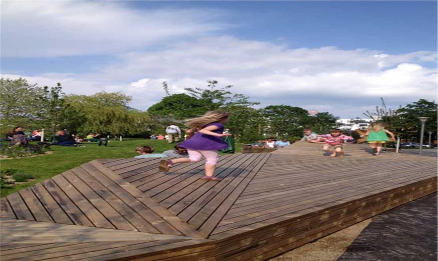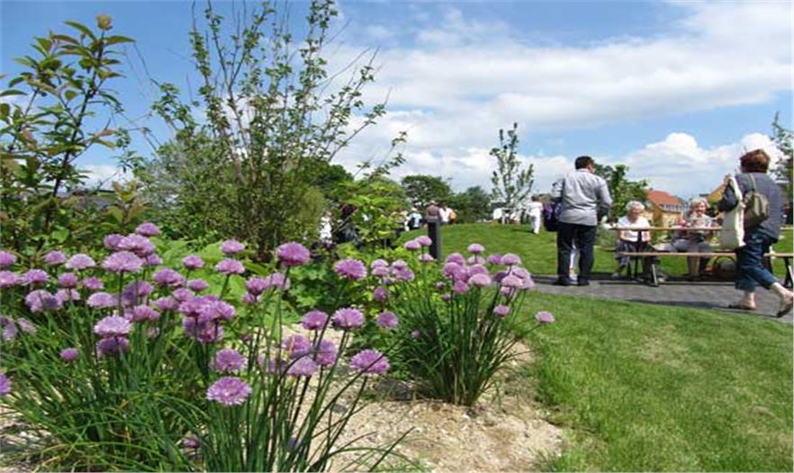 這個新的城市花園有繁茂的綠山、花壇、有趣的元素和為所有居民設計的新的聚會區(qū)。