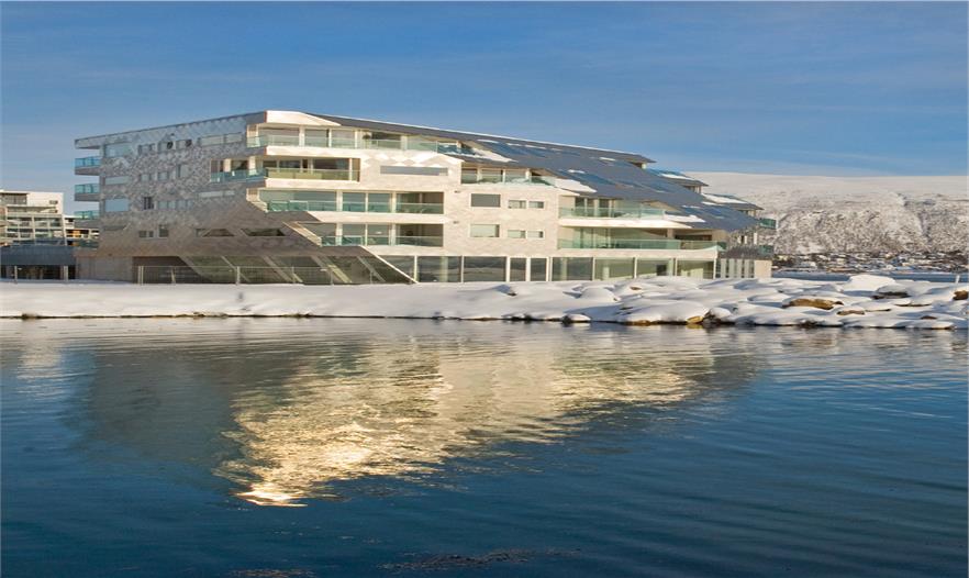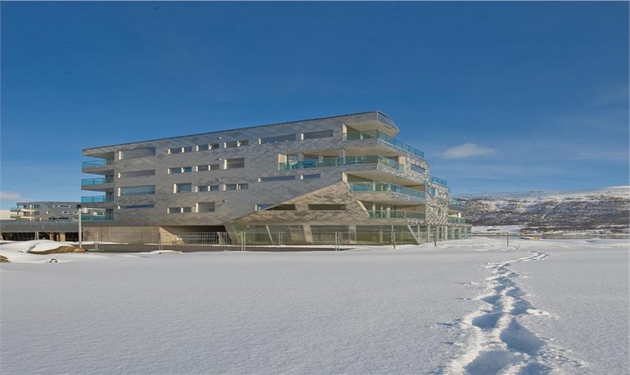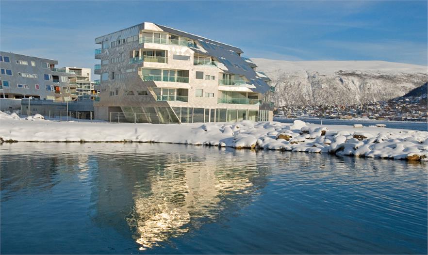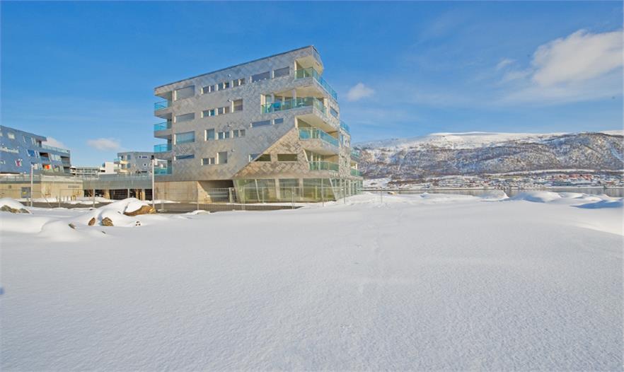 該項(xiàng)目是特羅姆瑟島東面沿線Strandkanten住宅區(qū)發(fā)展規(guī)劃的一部分,位于該區(qū)域的南端,能觀賞到南面的風(fēng)景、大山和峽灣。