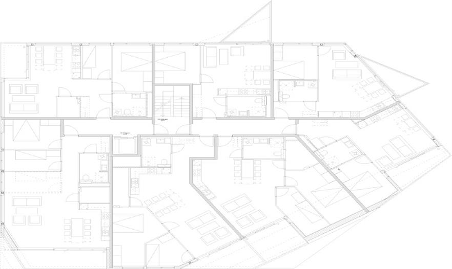 該規(guī)劃方案占地大約2100平方米,包括23間不同面積的公寓,每間公寓都有輪椅無障礙通道。第一層和碼頭區(qū)有一個(gè)小商業(yè)區(qū),用作當(dāng)?shù)乜Х鹊昊蛐℃?zhèn)的類似建筑。建筑里也有一個(gè)直達(dá)到第一層公共戶外區(qū)域的通道。