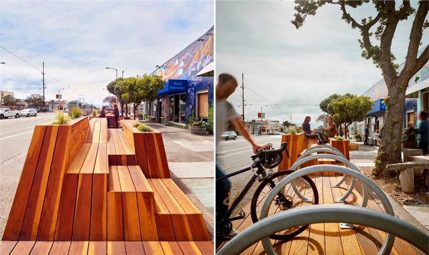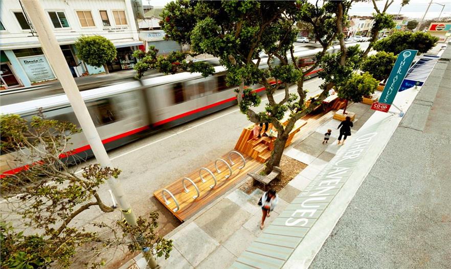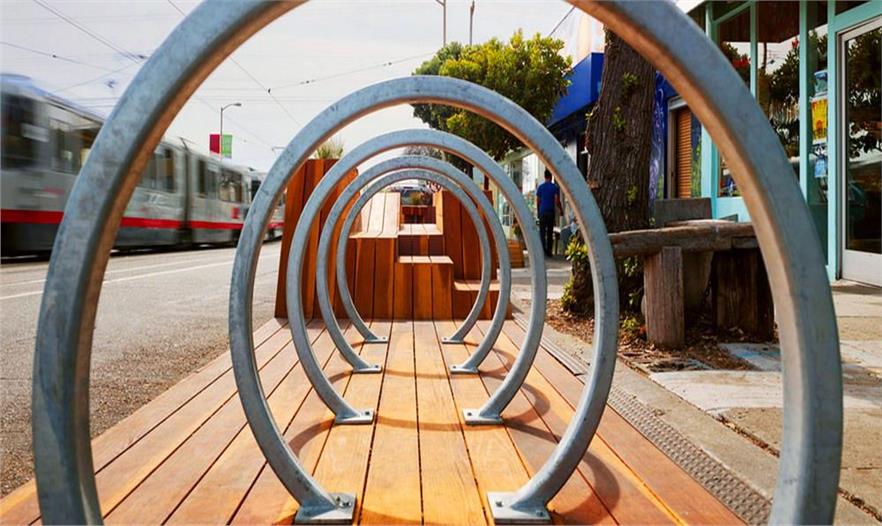 這個類似“公共雕塑”的微公園,成了舊金山一個解決城市問題獨特的方案。城市的地形與常規(guī)的街道網(wǎng)格成為該項目開發(fā)的靈感所在。設(shè)計師們采用了15米長的一個整體化的公益設(shè)計。這個設(shè)計位于當?shù)氐囊粋€食品市場及一家名為“海洋之風”的咖啡館前,旨在鼓舞當?shù)厝巳リP(guān)注那些失去了前進動力的公益項目。該項目可以說是一個野心勃勃的計劃,其中囊括了餐飲座位、群眾互動區(qū)域、一系列的自行車??课?、供兒童和寵物玩耍的耐用設(shè)施,一切都是充滿想象天馬行空、玩味十足。該項目中各個部分相互交織,宛若“擁抱”在一起一般。這種獨特而又令人興奮的設(shè)計顯得有些抽象,同時向人們傳達了安慰的感覺。