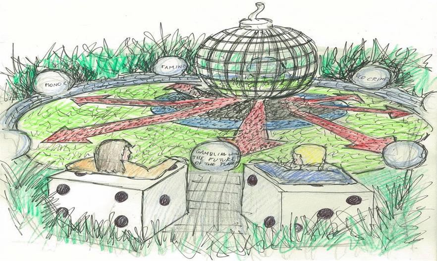 從根本上講,我們對(duì)不可再生資源的浪費(fèi)就是在豪賭我們孩子的未來(lái),或許是時(shí)候該關(guān)注下如何解決全球問(wèn)題了。紅色箭頭代表地球的命脈。箭頭指向全球問(wèn)題。傳統(tǒng)上,花園被視為我們個(gè)人如何看待這個(gè)世界的縮影。這個(gè)花園的設(shè)計(jì)靈感是“混亂”,表現(xiàn)了這個(gè)充滿(mǎn)問(wèn)題的世界,我們稱(chēng)之為家。