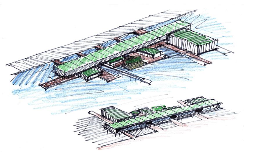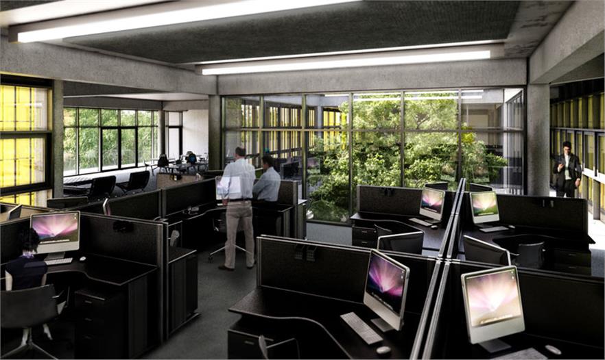 建筑主體包括三部分:行政大樓、創(chuàng)業(yè)孵化中心和維護(hù)中心。雖然這三個部分是獨立的,但是它們有一個共同特點,都使用了工業(yè)化建筑體系,如使用預(yù)制混凝土建造。此外,自然通風(fēng)系統(tǒng)、照明和大開孔的使用和控制,在建筑和風(fēng)景之間建立了連續(xù)的聯(lián)系。