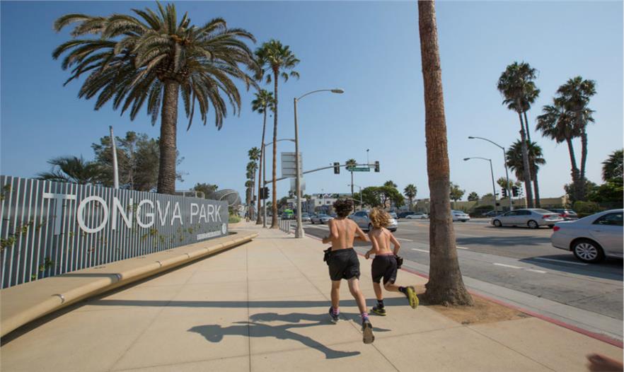 該項目位于美國的圣塔莫尼卡市,圣塔莫尼卡有知名的碼頭游樂園丶商店聚集的購物大道3街,與現(xiàn)代流行的圣塔莫尼卡購物中心。Tongva公園以前是一個停車場,設計團隊James Corner Field Operations將該地區(qū)進行了重新設計,耗資近43萬元打造占地6.2畝的全新公園。