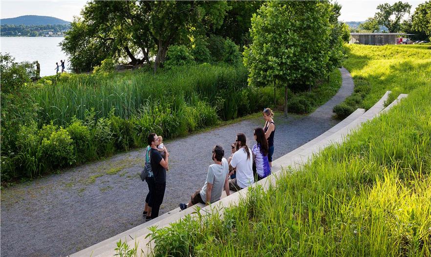 我們把紐約市北97千米(60英里)的一個后工業(yè)區(qū)域改造成一個大受歡迎的濱河公園,這里的藝術、休閑和環(huán)境教育讓游客與哈德遜河及其歷史建立了更深層的聯(lián)系。開始的時候,潮坪上有一個木制碼頭和玄武巖鐵路,但是在20世紀退化嚴重,之后得到修復,成為一個積極、多樣和彈性的景觀。這個項目完成了3個階段的修復和生態(tài)恢復,獲得了“可持續(xù)場地倡議”(the Sustainable Sites Initiative, SITES)的3顆星評定。
