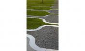 該區(qū)域形態(tài)的變化讓使用者發(fā)現(xiàn)了域融入建筑的新方法。硬景觀與滲透性、本土草坪植物交織在一起,參考海灘邊緣沖浪板陣列的形式,訴說該區(qū)域的生態(tài)史。
