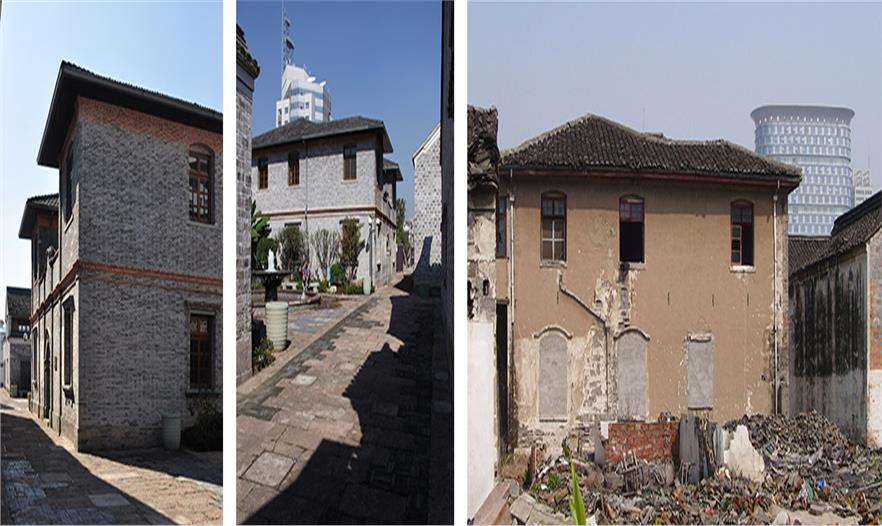 合分析這兩個維度的信息,BIDG得出歷史建筑的三個基本保護方法: 一、修復,對位于保護區(qū)內的文化保護單位和歷史名人故居進行原地修復;這部分建筑的立面基本完 整,BIDG對其立面局部進行修補。 二、遷建,對位于開發(fā)區(qū)內的文化保護單位和歷史名人故居進行建筑測繪,在保護區(qū)內另選地點按照 測繪圖重建;在實際的工作過程中,由于大部分的遷建建筑的原有立面已經破損殆盡,BIDG對這種遷 建建筑都進行了全新的立面設計,使其在保持原有空間格局的前提下,以民國時代的建筑風格為建筑 立面基調進行了優(yōu)化。 三、回收古建筑材料,對于普通民居拆遷留下的門、窗、磚、瓦,木材,進行再利用,保留古韻。