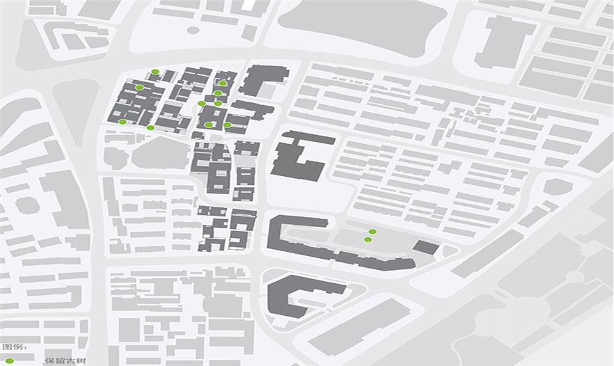 古樹保留。建筑設計綜述—— BIDG的建筑設計工作始于對地塊內的現狀建筑進行分類。 分類標準包括兩個維度: 重要性分類,即按照文化保護價值對歷史建筑進行分類 位置分類,即按照建筑所在位置進行分類