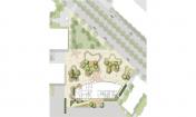 我們加入了高架的植物區(qū),由坐椅式矮墻環(huán)繞,蜿蜒曲折。這些坐椅式矮墻呈葉狀,所以它們能構(gòu)建出凹陷空間,提供多種不同高度的座位。鑲嵌有燈條的水平木制座位打斷了稍有坡度的坐椅式矮墻。植被增強了自然的表達性,營造出坐在座位上人們之間的親近感。常綠植物位于中心,周圍是開花的宿根植物和裝飾性草地,利用這種形式的花壇進行空間隔離,構(gòu)建顏色、動態(tài)和圖案。唐棣樹提供三維關(guān)注點(和可吃的漿果),但是它們不會打亂任何視覺聯(lián)系。我們設(shè)計了一個長凳結(jié)構(gòu)來環(huán)繞一棵現(xiàn)存的和顯著的銀槭樹,保護這棵樹并突出其存在感。另外,我們意識到冬天和晚上在新英格蘭的大學(xué)生活中占據(jù)著重要的地位,所以該設(shè)計包括燈、雕塑結(jié)構(gòu)和常綠植物這些全天和全年都突出的設(shè)計元素。我們的挑戰(zhàn)是如何停放區(qū)域服務(wù)車,同時保持親密感和豐富的體驗活動。