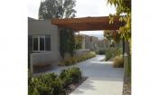 游泳池和大型廣場(chǎng)(配有籃球場(chǎng)、乒乓球場(chǎng)、游樂草坪和座位區(qū))為群體活動(dòng)和社區(qū)互動(dòng)提供機(jī)會(huì)。小型的戶外房屋如吊床花園為個(gè)人時(shí)間或一對(duì)一的交流以及重復(fù)性運(yùn)動(dòng)的自我慰藉提供機(jī)會(huì)。植物材料和矮墻隔離空間和界定空間,不用特意防止員工的監(jiān)視。矮墻對(duì)面或分散距離上的長(zhǎng)凳讓居民以自己舒適的水平觀察或參與。非擴(kuò)展性的柵欄和監(jiān)控門在該區(qū)域的周邊提供隱私性、安全性和空間性。該地產(chǎn)是平坦的,所有的公共和私人空間都能進(jìn)入,包括游泳區(qū)和溫泉以及溫室。