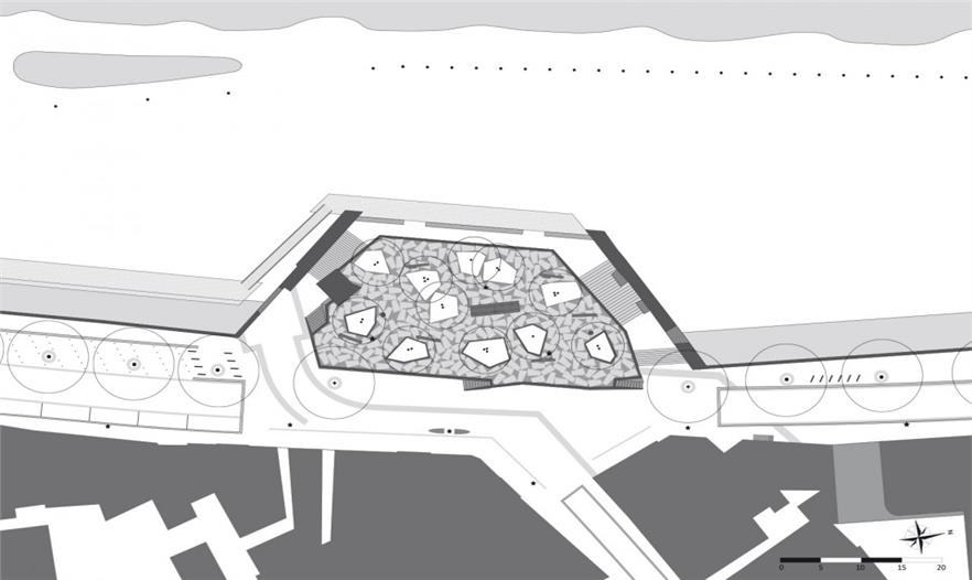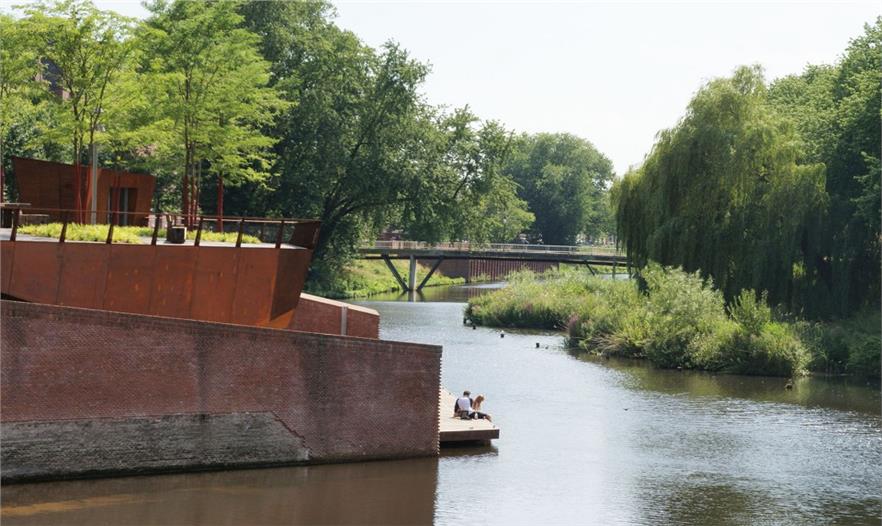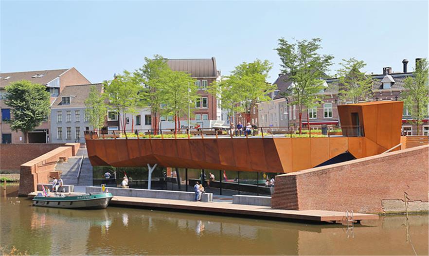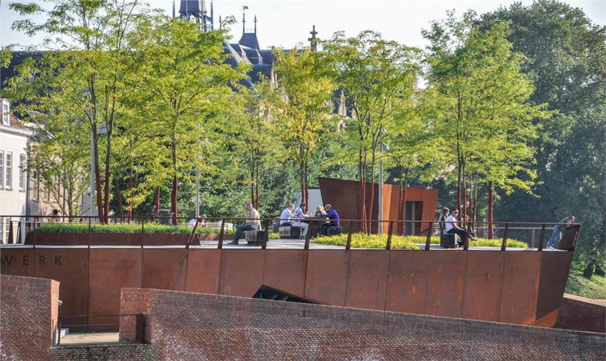 Bulwark Sint Jan曾是海爾托亨博斯歷史上四個主要的防御出入口之一。古往今來,原有的河上通關(guān)壁壘只剩下斑駁遺跡。鑒于場地的重要歷史性,餐廳和信息中心被建成半地下式。過去厚重的歷史墻面被保留。而公園就建在餐廳屋頂和上方街道上。