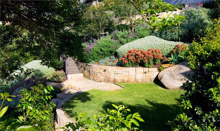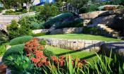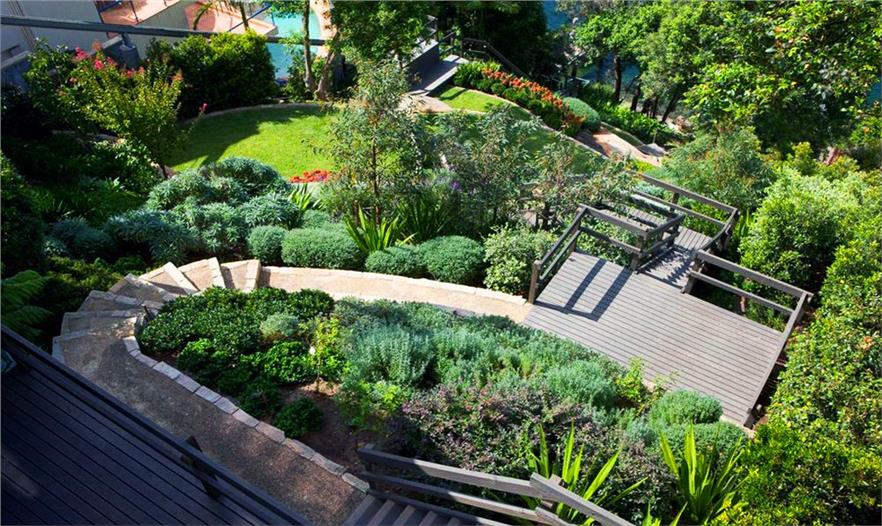 這個(gè)花園的設(shè)計(jì)是一個(gè)頗具挑戰(zhàn)性的項(xiàng)目,1600平方米的景觀在一個(gè)45度的斜坡上,土地和水的使用都受到了限制。一系列的石質(zhì)臺階和小徑沿著分層景觀臺一路延伸向岸邊。沿途植物頗為亮眼,一個(gè)混合了當(dāng)?shù)赜^賞性灌木和一些經(jīng)典海灘植物的迷你花園與自然景觀相呼應(yīng)。