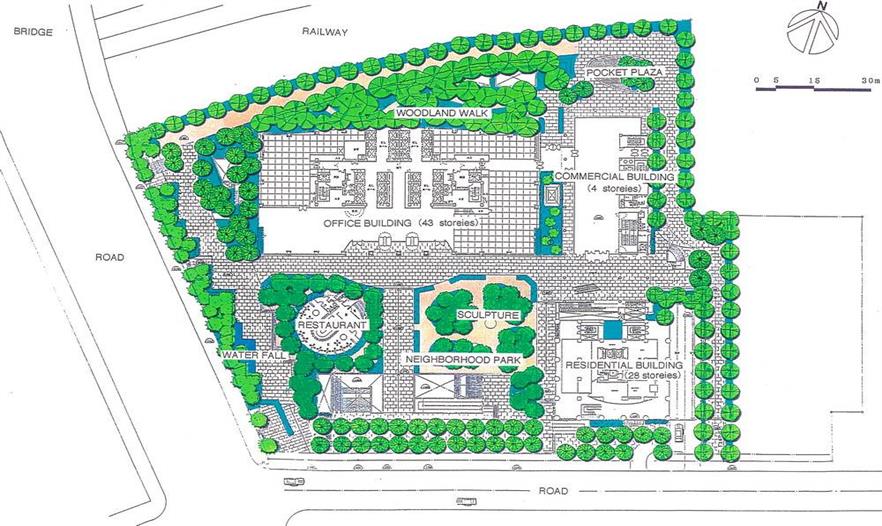 項(xiàng)目設(shè)計(jì)意圖旨在營造一處空間感明確的公園,以富有整體感的景觀將三座大緊密結(jié)合,場地內(nèi)各式各樣的景觀連接點(diǎn)吸引著原有建筑內(nèi)的人群。設(shè)計(jì)師認(rèn)為“空間”概念是地理位置、人類作用與時(shí)間的綜合體。本項(xiàng)目位于東京田町區(qū),建設(shè)為毗鄰建筑的開放式公園廣場。為使公園設(shè)計(jì)能吸引各類游人和毗鄰建筑的居民,設(shè)計(jì)師創(chuàng)造了獨(dú)特的紐帶,這一紐帶將在場地、游人與周圍建筑之間世代傳承并創(chuàng)造歷史,從而營造出獨(dú)一無二的“空間感”。項(xiàng)目通過對原有場地基礎(chǔ)設(shè)施進(jìn)行有效地利用和改進(jìn),將對繁華都市的環(huán)境影響降到最低,以此取代在未開發(fā)的土地上新建一處更適于種植和休閑的場所。相較于原有屋頂,項(xiàng)目中的大型綠色屋頂更具顯著的植物性特色,并因此降低了城市中的熱島效應(yīng);同時(shí),綠色屋頂?shù)挠晁嫘钤O(shè)計(jì)還能收集雨水、控制雨水徑流的排放。項(xiàng)目植物還在場地內(nèi)營造出四季宜人的微觀氣候,在夏季為游人提供蔭庇,在冬季讓直射的陽光制造溫暖。項(xiàng)目場地內(nèi)運(yùn)用的特殊工程土壤在減輕結(jié)構(gòu)負(fù)重的同時(shí),最大限度地維持了土壤的濕度,從而減少對植物的澆灌。