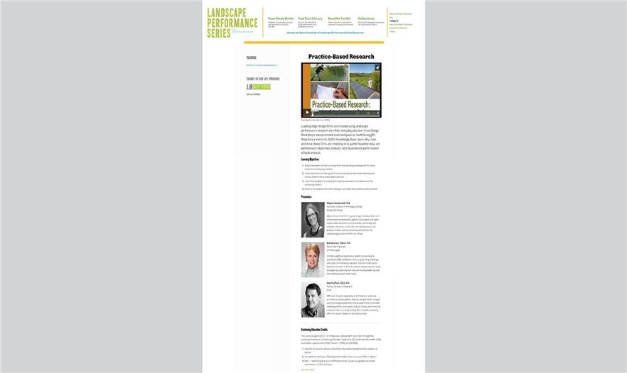 新網(wǎng)站的其他部分有:新聞博客和觀察名單,與景觀性能新聞、投資機(jī)會和熱門話題同步;培訓(xùn),報(bào)道景觀性能相關(guān)的講座和在線會議;教育資源,有大學(xué)教學(xué)材料;評估性能指南,有100多個帶有評估考慮和定位信息的測量方法。