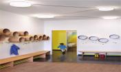 Baukind事務所在德國柏林完成了名為Kita Zauberzwerge的托兒所。這個空間使用彩虹效果的色系營造有趣、活躍的環(huán)境,而且天花板都由各種面積的小洞裝飾。該空間都是小門,適合孩子們的尺寸。該事務所還設計了小角落和衣鉤放置他們的東西,小板凳很適合小孩子脫下靴子坐下休息。