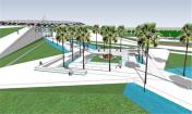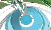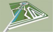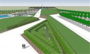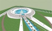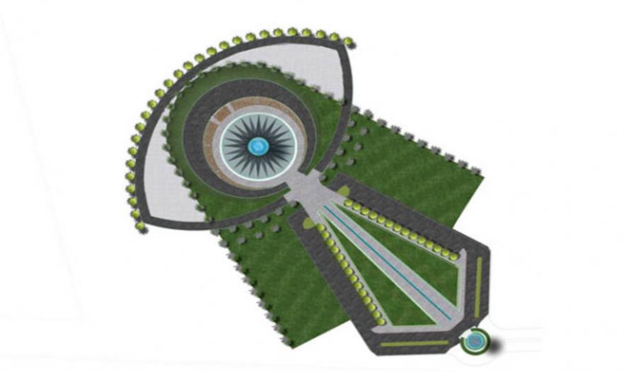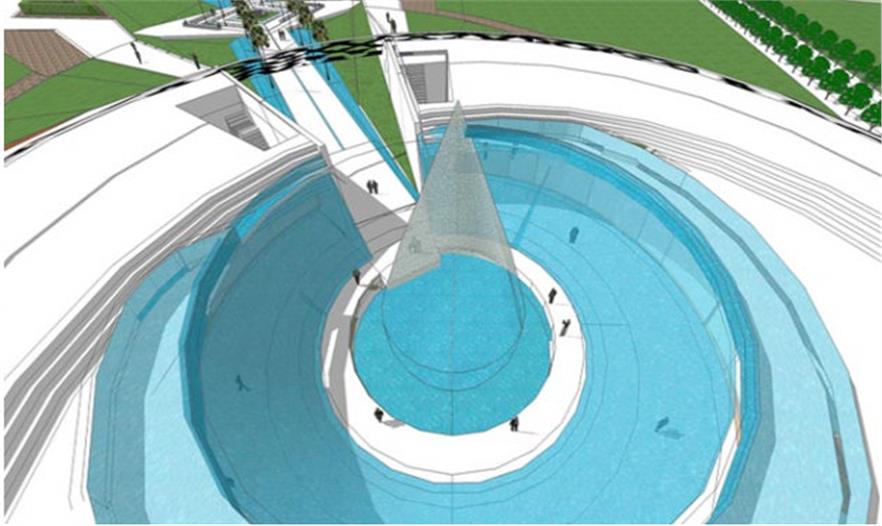 該公園里直徑為20米的一個水景歡迎游客的到來,創(chuàng)造該項目元素之間的一種對話。水景周邊是一條“綠毯”,而中心是一個沖出水面的火焰狀結(jié)構(gòu),成為游客游玩這個紀(jì)念公園的起始點。主軸線由2條綠堤定義,長110米,高度由4米逐漸消失,建造出垂直傾斜的地毯,強調(diào)視覺效果,目的在于展現(xiàn)國王淚珠以及其對附近大學(xué)的影響。