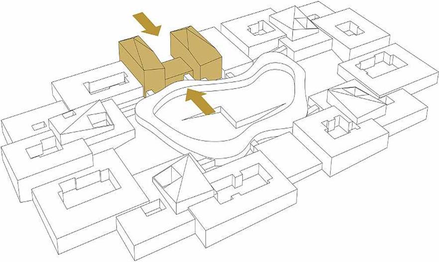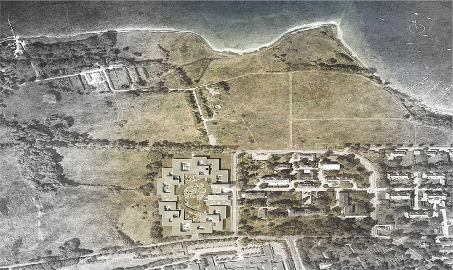 該區(qū)域?qū)ξ磥砭癫≡旱钠谕麡?gòu)成了該項(xiàng)目的建造背景——與能俯瞰羅斯基勒峽灣40公頃區(qū)域上獨(dú)特、優(yōu)美的環(huán)境融合。