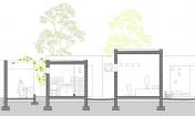 就分配而言,所有的房屋有相同的規(guī)劃,但是以不同方式來開展,彼此靠近,為對方提供遮陰。自由的小路穿行其間。自然通風和遮陽均經(jīng)過仔細規(guī)劃,在需要的地方設置自然通風設備。