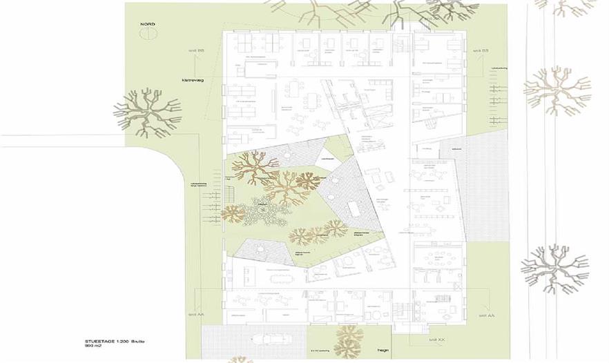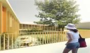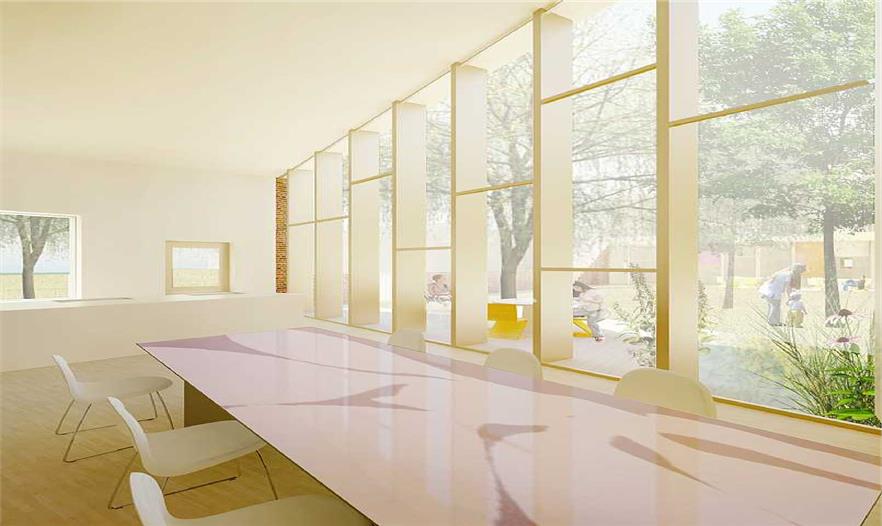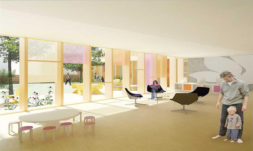 該中心被設(shè)計(jì)成一個(gè)顯著且凝聚的建筑,從該區(qū)域的各個(gè)地方都能一眼看出,突出該機(jī)構(gòu)提供特殊服務(wù)的性質(zhì)。該建筑是非正式且受歡迎的:為了避免產(chǎn)生機(jī)構(gòu)感以及確保病人和員工的安全,室內(nèi)的布局被分割成較小的單元,由中央社交空間連接。