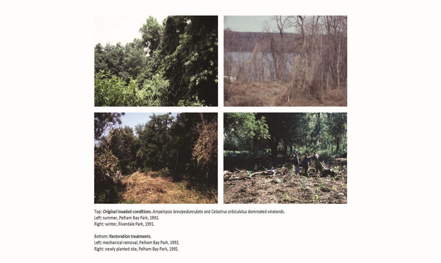 這個(gè)研究測(cè)試了那些森林的命運(yùn),它們是紐約城市公園自然資源機(jī)構(gòu)(New York City Parks Natural Resources Group)早期利用新生態(tài)修復(fù)方案改善公園中森林健康的焦點(diǎn)。紐約城市公園自然資源機(jī)構(gòu)自1984年成立以來(lái)一直致力于城市森林碎塊的生態(tài)修復(fù)工作,那時(shí)從初始繪圖中發(fā)現(xiàn)了公園森林(以入侵性的木質(zhì)灌木和藤蔓植物為主)中有大量的棲息地斑塊。