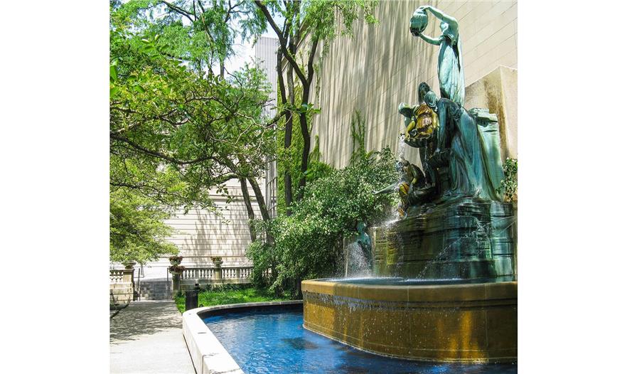 這個(gè)小規(guī)模的花園建在芝加哥藝術(shù)學(xué)院的停車場(chǎng)上,免費(fèi)對(duì)公眾開(kāi)放,每年會(huì)有200多萬(wàn)的游客。這個(gè)公園完工于1967年,它是丹•凱利最中意的項(xiàng)目之一。從密歇根大道上可以進(jìn)入該花園,就會(huì)看到2個(gè)高架的花壇種著3排錯(cuò)列的皂莢樹(shù)、遮蔭的水蠟樹(shù)、地被植物和球根花卉。中央廣場(chǎng)被一個(gè)長(zhǎng)方形的水池一分為二,水池一直延續(xù)到Lorado Taft在1913年雕刻的五大湖噴泉。在水池的另一邊,山楂樹(shù)生長(zhǎng)在高架的花壇里為游客提供陰涼。每個(gè)花壇占地6.1米(20英尺)×6.1米,里面種有地被植物和草本植物,為夏季增添色彩。這些樹(shù)木為這個(gè)廣場(chǎng)提供陰涼,環(huán)繞著噴泉。
