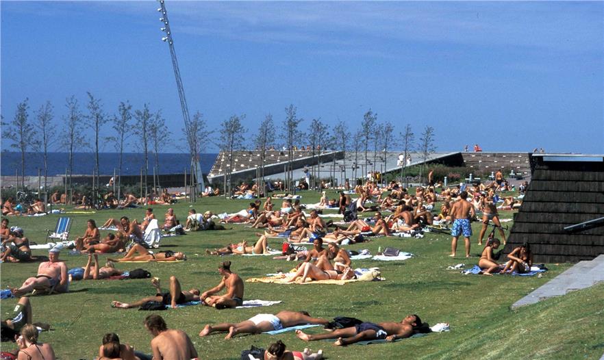 公園里展示了在水邊的各種類型的社會活動。公園是由不同大小和性質(zhì)的空間構(gòu)成的,用于不同形式的公園生活。活動空間的大小范圍從最小的突出海面的平臺——可以容納10 - 15人,到多用功能的草坪,它提供了數(shù)千人活動的空間。在這里還常??吹叫氯伺e行婚禮、孩子的洗禮或時尚攝影等活動。