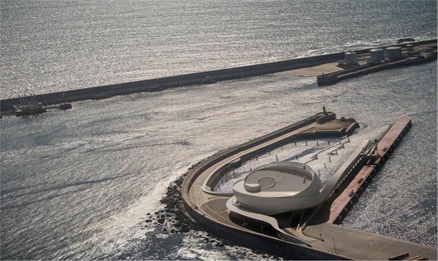 項目分為三個階段,最初的兩個階段包括一個新的碼頭和主建筑體。最后一個階段整合主體建筑核心區(qū)的反射水池,讓街道連接城市和濱水區(qū),同時設置小型輔助建筑。