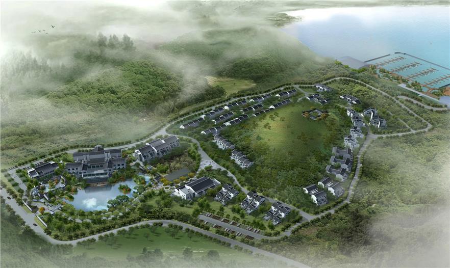 這個項目是太湖的一個很有名的小島,西山島的東南側(cè),三面是山,東面是太湖。