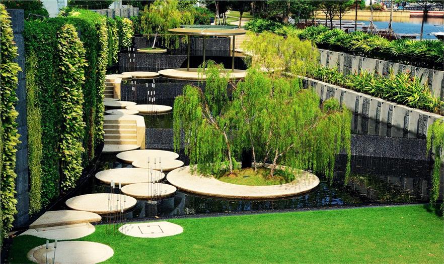 如果你住進(jìn)圣淘沙島的住宅,那將會是值得慶祝的世界一流的居住體驗,因為這是唯一一座能欣賞到中國南海全景的住宅。有建筑被設(shè)計成曲線型,周圍的景觀和環(huán)境都被設(shè)計成與建筑形態(tài)呼應(yīng)的曲線形式。臺階、汀步、綠色土丘、室外亭臺、按摩浴缸、觀景平臺等不同元素都反映了建筑的純曲線和循環(huán)的形式。園內(nèi)的景觀照明渲染了園內(nèi)整體的寧靜氛圍,它間斷式的照明提供了夜晚觀看海景的光線。園路和其余設(shè)施為了方便使用邊上埋置了地埋燈作為照明系統(tǒng)。濱水景觀和亭臺也因為有趣的照明系統(tǒng)添加了景觀空間的趣味性。在這樣奢華的環(huán)境中,海岸提供了一個使人們遠(yuǎn)離城市喧囂的舒緩的生活體驗。