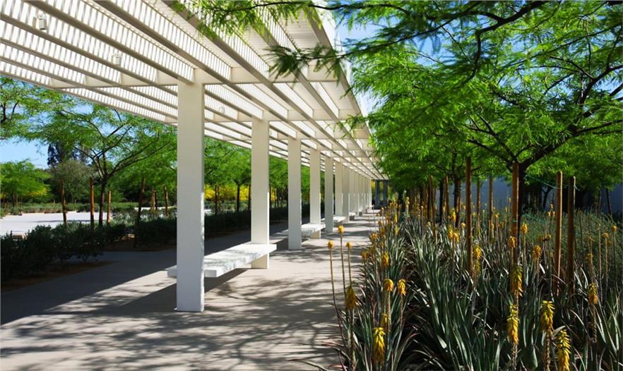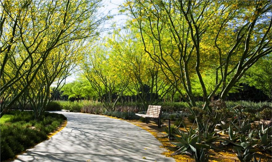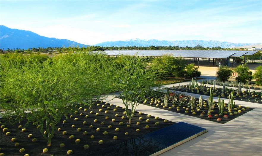 這個(gè)項(xiàng)目位于美國(guó)加利福尼亞州蘭喬米拉奇,是出版商、外交官和慈善家沃爾特·安嫩伯格的一個(gè)200英畝的沙漠?dāng)U展區(qū)域,是一處高爾夫球場(chǎng)的景觀延伸,它由The Office of James Burnett (OJB)設(shè)計(jì)。由于景觀設(shè)計(jì)師描繪了一幅活躍的景觀,尊重索諾蘭沙漠的特點(diǎn)展示了嚴(yán)重缺水的西南部的新的生態(tài)美學(xué)景觀,它受印象派的研究和廣泛收集。由于場(chǎng)地地處沙漠邊緣,景觀的可持續(xù)發(fā)展成為了設(shè)計(jì)重點(diǎn),植物多選擇適合在沙漠生長(zhǎng)的仙人球等植物,同時(shí)場(chǎng)地以沙漠生境恢復(fù)、高效毛細(xì)管灌溉系統(tǒng)、土壤水分監(jiān)測(cè)、雨水保留裝置、地?zé)峋?、太?yáng)能使用和綠色廢物回收為特點(diǎn)。