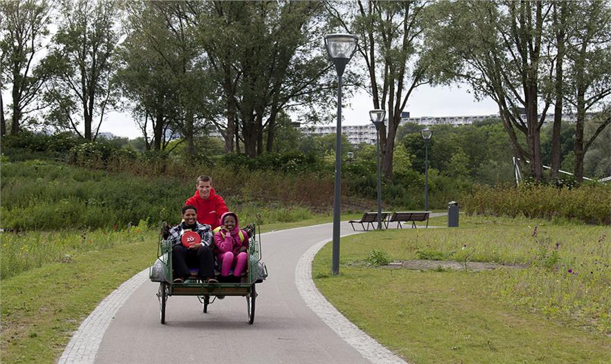 Bijlmer區(qū)形成于阿姆斯特丹在二十世紀(jì)六七十年代大規(guī)模擴(kuò)張時期。烏托邦式的現(xiàn)代主義為基礎(chǔ)的鄰里計劃設(shè)想了一個集地鐵系統(tǒng),道路網(wǎng)絡(luò)自由口岸,停車場和廣泛的綠地均勻13層高的住宅大廈為一體的綜合發(fā)展方案。但實際上,它面臨了許多無法預(yù)料的問題,如文化差異、人口劇增等?,F(xiàn)在居委會修改了方案,敦促提供差別化住房存量,提高公共領(lǐng)域的管理。該戰(zhàn)略的一部分是將Bijlmer公園轉(zhuǎn)變成一個新的城市公園,主要有以下三個特點:建筑內(nèi)部景觀的融合,清晰明確的界限和入口以及多功能的活動區(qū)域。