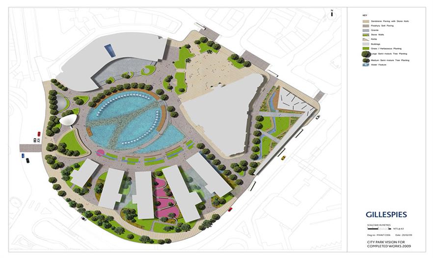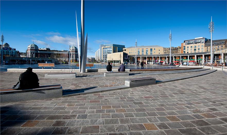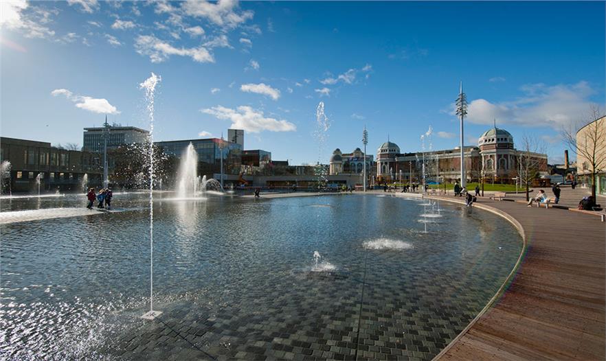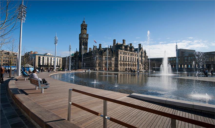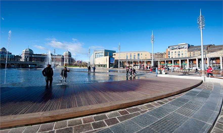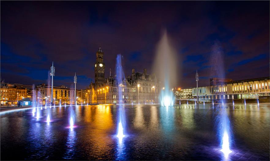 英格蘭北部城市布拉德福德(Bradford)的城市公園獨(dú)具特色,這個(gè)公園是由Gillespies景觀設(shè)計(jì)公司、代表布拉德福德政府的城市設(shè)計(jì)師以及一組多學(xué)科設(shè)計(jì)團(tuán)隊(duì)共同完成的。作為一項(xiàng)地標(biāo)性城市空間,它包含了英國最大的城市中心水景——4000平米的鏡面湖和英國最高的噴泉。最終的設(shè)計(jì)是建立在原始的城市中心景觀基礎(chǔ)上,在2.4公頃的公共空間中創(chuàng)造了靈活多樣的園林小品,包括鏡湖、噴泉和公共藝術(shù)平。這個(gè)公園可以作為國家媒體博物館和Alhambra劇場與交通樞紐連接,便于游客參觀,加強(qiáng)了布拉德福德的整體形象,使之能很好的與其他城市區(qū)分出來。