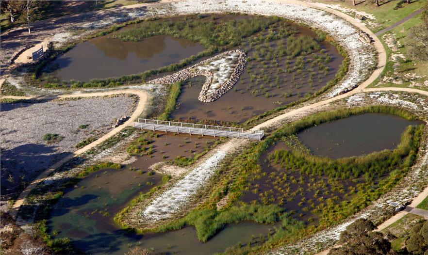 該濕地公園的意義十分重大,它將工程設(shè)計(jì)、生態(tài)以完美的方式融合在一起,打造出了一個(gè)集獨(dú)特景觀和雨水回收系統(tǒng)為一體的高質(zhì)量城市公園。濕地內(nèi)包括兩個(gè)相連的池塘,它們可以對(duì)水質(zhì)進(jìn)行處理,同時(shí)儲(chǔ)藏公園及周邊環(huán)境排入的雨水?;厥绽脕?lái)的水可以用來(lái)灌溉皇家公園內(nèi)的植物。濕地與其附近的景觀為城市營(yíng)造了一片綠色清新的空間,為環(huán)境、教育、娛樂項(xiàng)目提供了絕佳的機(jī)會(huì)。