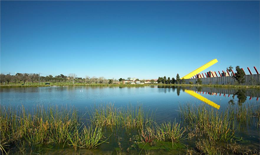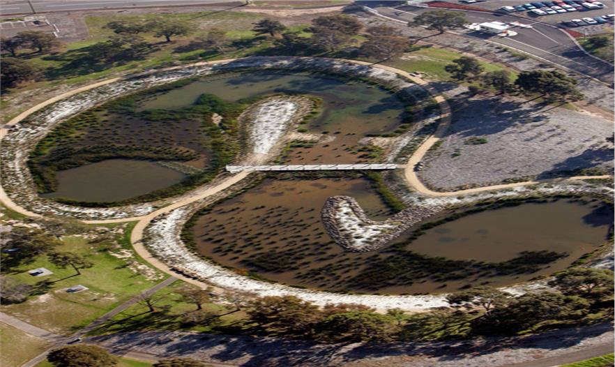 濕地的外觀輪廓非常不規(guī)則。從最基本的層面來(lái)說(shuō),濕地可以為游客營(yíng)造出非凡的體驗(yàn),同時(shí)通過濕地內(nèi)各種羊腸小徑,人們可以領(lǐng)略公園內(nèi)各種類型的植被和濕地類型。池塘區(qū)域是當(dāng)?shù)匚锓N棲息的主要場(chǎng)所,這里道路暢通,可以為游客提供教育和休閑體驗(yàn)。濕地不僅提高此地的生物多樣性,還減少了用于植物灌溉的飲用水,且水質(zhì)經(jīng)池塘凈化后才排入港灣。由此產(chǎn)生的景觀提供了這個(gè)多樣的環(huán)境和宜人的城市綠洲。