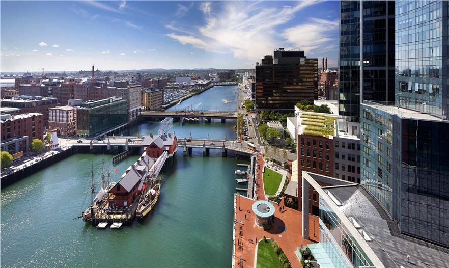 美國(guó)大西洋碼頭位于波士頓內(nèi)港的戰(zhàn)略性要地。該碼頭面向尖兵堡海峽,在這里國(guó)會(huì)街橋?qū)⒉ㄊ款D鎮(zhèn)和濱海港口區(qū)。濱水地區(qū)在得到重整復(fù)興之后,現(xiàn)已成為波士頓海灣最受歡迎的地方之一。