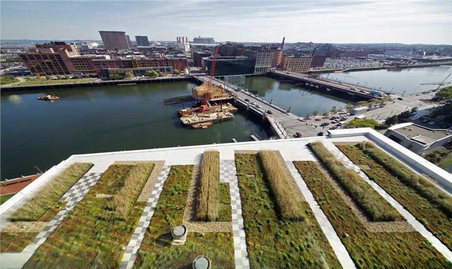 大西洋碼頭的建筑形式以及海峽碼頭構(gòu)造等,均參考了垂直幾何學(xué)的相關(guān)數(shù)據(jù)進(jìn)行建造。大西洋碼頭是LEED白金獎(jiǎng)項(xiàng)目,這也是波士頓獲得這個(gè)稱號(hào)的第一個(gè)摩天大樓項(xiàng)目。能夠獲得這個(gè)水平的認(rèn)證,離不開(kāi)Halvorson Design事務(wù)所的全程設(shè)計(jì)建造參與。這個(gè)項(xiàng)目的完成用水,比波士頓典型的城市商業(yè)區(qū)大廈項(xiàng)目少了69%。這得益于有效的景觀灌溉系統(tǒng),并且項(xiàng)目中的植物應(yīng)用更多依賴于鄉(xiāng)土物種。