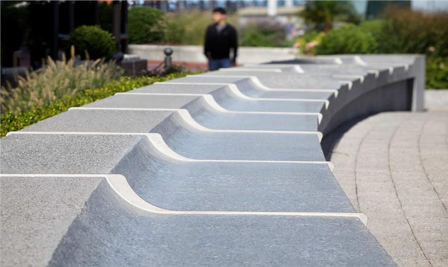 景觀設(shè)計(jì)方案不只是考慮到了波士頓海港步道和濱水公園,還在重建的商貿(mào)建筑的第八層,設(shè)置了引人入勝的植物種植屋頂平臺(tái)。綠色的屋頂平臺(tái)成為了大西洋碼頭一個(gè)特色景觀,更成為這個(gè)可持續(xù)項(xiàng)目中不可缺少的一部分。設(shè)計(jì)師通過(guò)將平臺(tái)的造景圖案、選材的質(zhì)地肌理以及植物色彩融合統(tǒng)一,讓這個(gè)地方成為大廈中的景觀特色,讓人們獲得視覺(jué)享受。綠色屋頂交替種植了大片的景天科植物,配以當(dāng)?shù)卦荩⑦\(yùn)用對(duì)比鮮明的硬景元素,如木質(zhì)、混凝土的鋪路材料等。