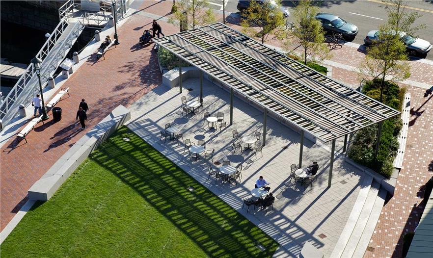 大西洋碼頭充滿生氣的景觀是由開(kāi)放的公園,開(kāi)敞的活動(dòng)空間,重新設(shè)計(jì)的波士頓海港步道樞紐區(qū)域,以及綠色屋頂平臺(tái)這幾個(gè)部分組成。