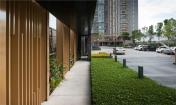 潺潺的水聲暗示著訪客墻后便是他們無(wú)法前往的泳池區(qū)域。泳池的側(cè)面是通向另一棟公寓樓和主花園的花園小徑。高聳的灌木和列植的樹木為小路帶來(lái)林蔭,讓這普通的過(guò)道成為了舒適的漫步道,同時(shí)也阻隔了視線,進(jìn)一步保證了泳池的私密性。泳池區(qū)域的種植設(shè)計(jì)概念為“四季的變遷”,在不同時(shí)節(jié)綻放的花木告知著住客季節(jié)的更迭。清新的綠色配搭著暖銅色的墻面,熱帶的植物和泳池水景,為歸家的住客洗滌每日辛勤工作的疲憊。