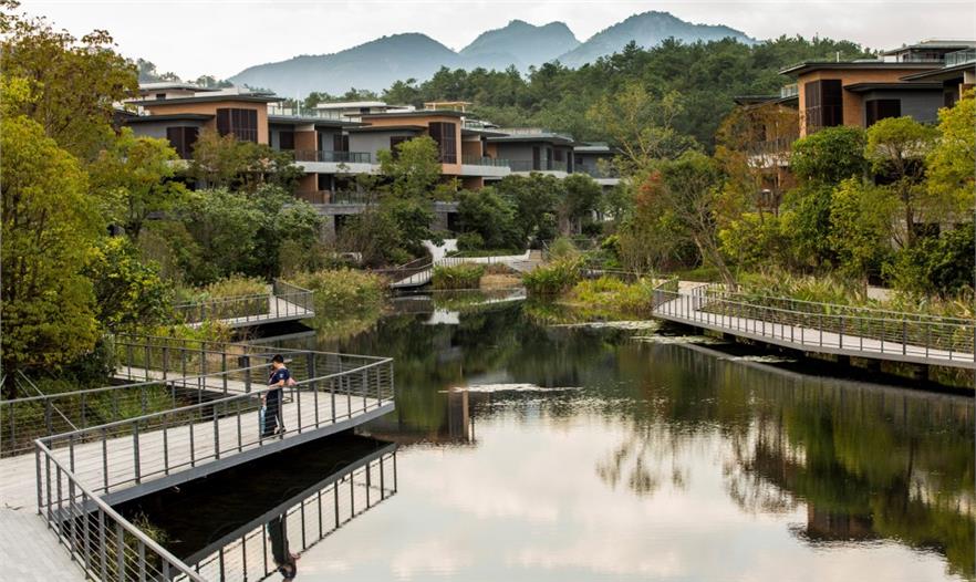 福州永泰萬科城項(xiàng)目位于福州永泰縣赤壁景區(qū)內(nèi),45公頃的土地面積皆處于毗鄰的大樟溪流域范圍內(nèi),周邊環(huán)繞著12座小山。項(xiàng)目?jī)?nèi)將興建精品酒店,商業(yè)街,會(huì)員俱樂部,高層住宅,獨(dú)立和聯(lián)排別墅。這個(gè)大規(guī)模的住宅片區(qū)建設(shè)順應(yīng)了自然地形的起伏。場(chǎng)地中央的湖泊被保留下來,成為統(tǒng)領(lǐng)全局的公共開放空間,沿水系通過社區(qū)公園與各區(qū)域相連。山體也被納入了社區(qū)公園的范圍,山間的小路交錯(cuò)相通,成為一個(gè)大型休閑游憩系統(tǒng)覆蓋著整個(gè)場(chǎng)地。
