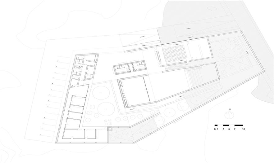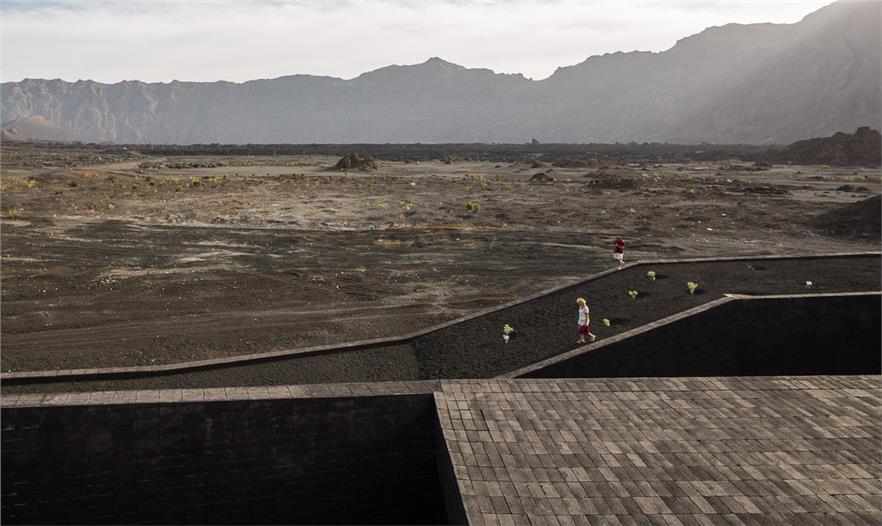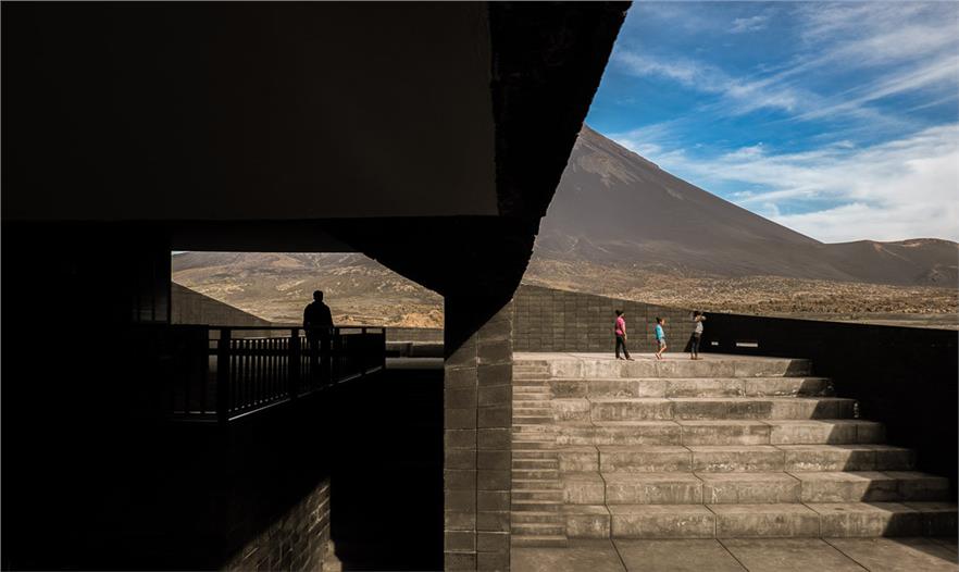 這一座建筑物采用的照明設(shè)備能盡量減少對周圍環(huán)境的破壞,因此不會給當(dāng)?shù)氐镍B類帶來傷害。自然公園總部管理處能夠為附近的chã das caldeiras村莊提供服務(wù)。這一村莊坐落在福戈島火山口海拔1800米處,為大約1200名居民提供了棲身之地。整個建筑物是由當(dāng)?shù)氐墓そ硞儾捎帽就恋牟牧吓c建造技術(shù)建造完成的。此外,該建筑物還采用了雙重水循環(huán)系統(tǒng)。這一系統(tǒng)可以將房頂?shù)挠晁占饋恚缓髮⑺c洗滌水一起儲存起來,以備再次利用。