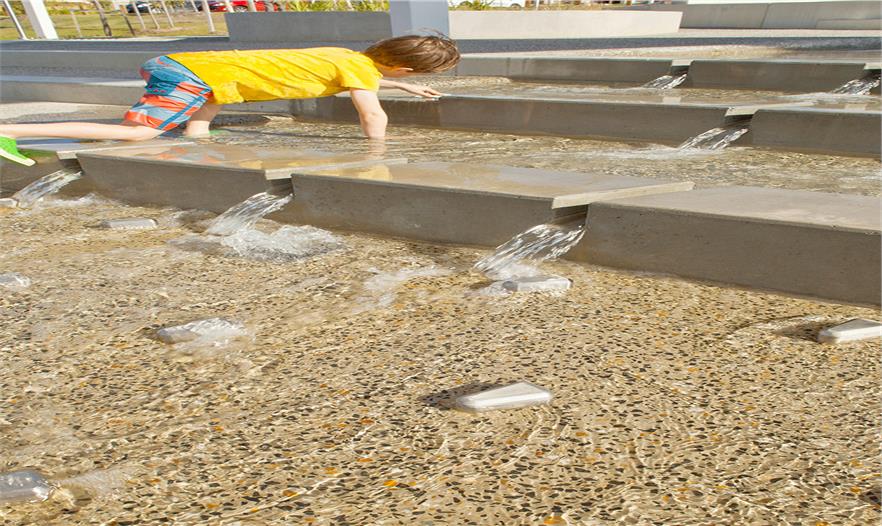根據(jù)Lend Lease提供的設(shè)計任務(wù)書,客戶希望在此區(qū)域變?yōu)槿律鐓^(qū)時,此區(qū)級游樂場地成為一個主要的引人注目的場所營造元素??蛻粢笥螛房臻g內(nèi)的元素需吸引各個年齡段的兒童,具有包容性,并且設(shè)計顯著的水景娛樂區(qū)。
