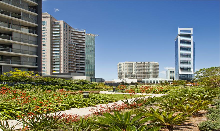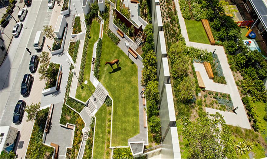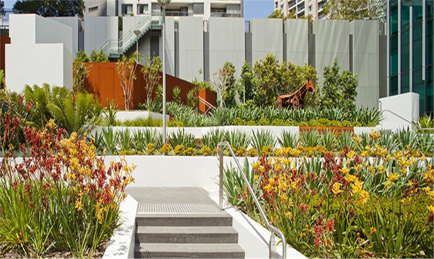 作為一個具有多功能的綜合開發(fā)項目,時代公寓位于繁華熱鬧的悉尼車士活郊區(qū)內(nèi),分布于現(xiàn)有的鐵路圍合結(jié)構(gòu)周圍及上端。 在澳洲,利用停車場和鐵路設(shè)施創(chuàng)建公共空間并不普遍,因此,本項目為融合景觀和基礎(chǔ)設(shè)施、打造具有意義的公共空間樹立了榜樣。 基地周邊高樓聳立,導致全天和全年的日照差異較大。特殊的基地環(huán)境也為打造具有豐富層次的景觀創(chuàng)造了機會,為打造社交空間及呈現(xiàn)環(huán)境的可持續(xù)性提供了最佳范例。 鑒于車士活區(qū)都市建筑密度較大,此項目也為滿足當?shù)剞k公人士及居民的需求,打造了一個可供休憩的公園目的地。