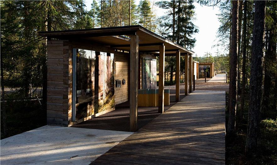 Hamra國(guó)家公園是瑞典最古老的國(guó)家公園。該項(xiàng)目遵循瑞典環(huán)境保護(hù)局原則設(shè)計(jì)入口位置,目的在于使用良好的結(jié)構(gòu)和建筑來(lái)展現(xiàn)瑞典獨(dú)特的自然景觀,安排相關(guān)的服務(wù)功能。