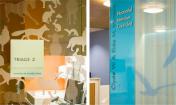 純白的標(biāo)志系統(tǒng)最突出的是彈力球的顏色,上面標(biāo)有指示箭頭和象形圖,與其動態(tài)環(huán)境相對應(yīng)。室內(nèi)設(shè)計和標(biāo)識系統(tǒng)中柔和的曲線結(jié)構(gòu)構(gòu)建出獨立的信息亭。杜邦可麗耐(Corian)因其成型性、無孔和衛(wèi)生特性被選為基底材料。這些信息亭是由復(fù)合曲線構(gòu)成,由于多變的晶體(還有五彩圖畫)被分割成不同的高度。