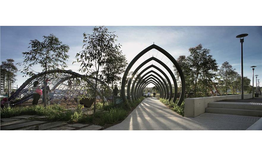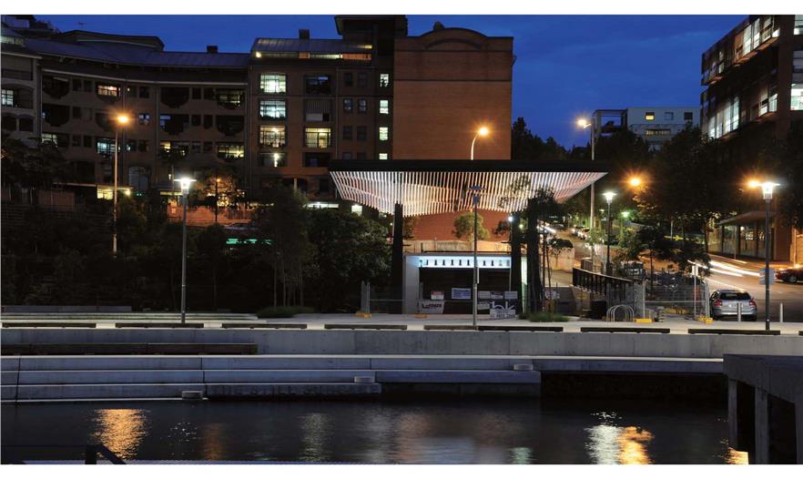 Pirrama 公園占地1.8 公頃,是悉尼的一個臨水城市公園。公園的設(shè)計(jì)將城市和水資源緊密相連,呈現(xiàn)出獨(dú)樹一幟的臨水社區(qū)設(shè)施景觀,展現(xiàn)了具有可持續(xù)發(fā)展性的創(chuàng)新想法,如太陽能的利用以及具有深遠(yuǎn)影響的雨水收集概念。