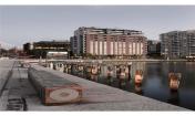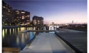 這一屢獲獎項(xiàng)的設(shè)計(jì)提供了一系列臨海港的休閑娛樂體驗(yàn)。整個設(shè)計(jì)主干部分為一個全新的步行和自行車共享的道路,并以此延伸出多個公園圍合空間和多條全新的道路。一條臨水漫步道不僅是整個園區(qū)的主心骨,也是海港開闊空間14 千米交通網(wǎng)絡(luò)中的重要一環(huán)。在海港周邊設(shè)有一處遮蔽港灣,是一項(xiàng)具有重要意義的海洋工程,展現(xiàn)了基地此前的海岸線。