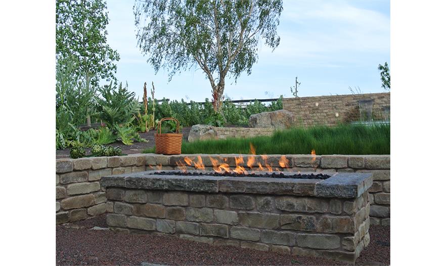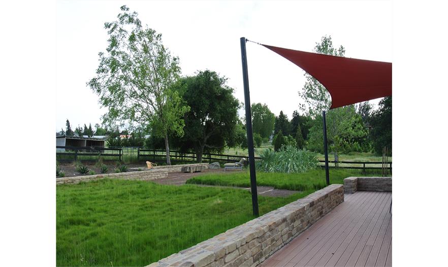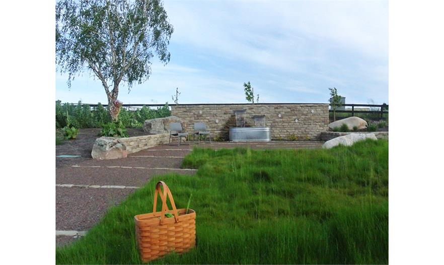 該花園是因客戶對烹飪、食物種植、本土植物、馬羊的喜愛設(shè)計(jì),Shadesof Green事務(wù)所將農(nóng)場景觀的典型特征加入到一個(gè)漂亮且具有實(shí)用功能的花園中。設(shè)計(jì)師利用低矮的墻壁平整庭院,將傳統(tǒng)的草地改成本土草坪。一個(gè)大型區(qū)域由碎石鋪裝,利用該區(qū)域回收的石頭設(shè)計(jì)。石頭墻是焦點(diǎn),其中的馬槽被改造成水景。該設(shè)計(jì)中利用了生產(chǎn)食物的植物和裝飾性植物,達(dá)到美觀效果,同時(shí)也為家庭提供新鮮的食物。該花園通過蔓生草慢慢過渡到遠(yuǎn)處的草地和田地中?;鹪卦O(shè)計(jì)以及帶有遮蓬的甲板使得該公園四季皆宜,并增添了一抹野性。