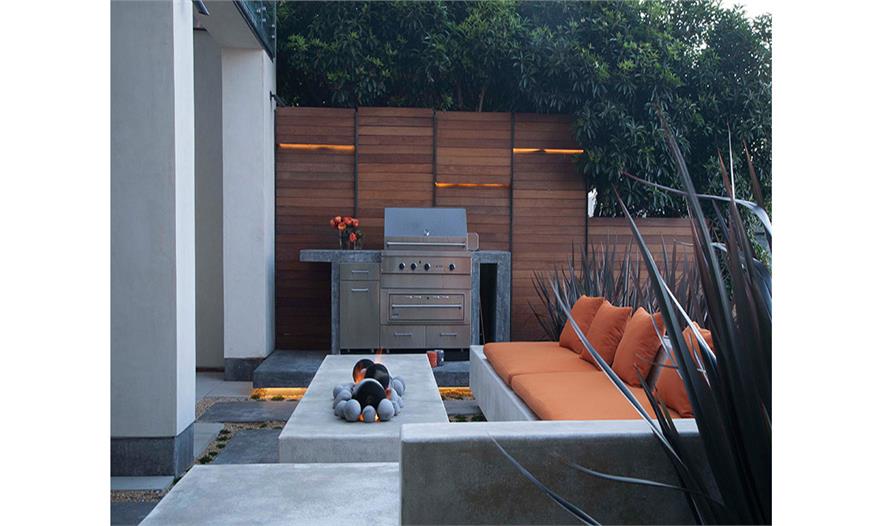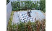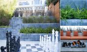 該花園呈現(xiàn)出一個挑戰(zhàn):怎樣將游樂以及休閑空間高品質(zhì)地融合到一個小型、陡峭的花園中?Shades Of Green事務(wù)所的方案是設(shè)計2個小型露臺,看起來相互聯(lián)系但功能不同。高層露臺是一個戶外起居室,設(shè)有超大的特制混凝土家具、火爐桌以及嵌入式的燒烤區(qū),用于休息以及舉辦小型聚會。低層的露臺是一個多功能游樂空間,如一個混凝土鋪裝籃球場以及實物大小的大理石棋盤,也用于舉辦大型聚會。鄰近建筑沿線的木制柵欄和高大的竹子構(gòu)成該花園的屏障,維護隱私,而嵌入式照明設(shè)施營造出舒適的晚間氛圍。