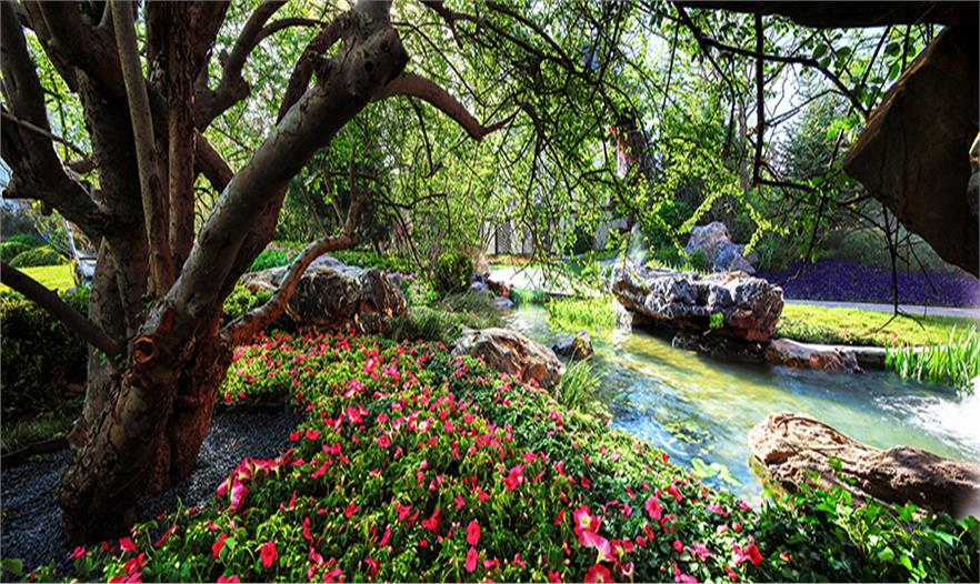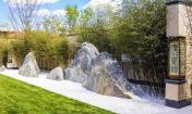 特選切片泰山石對(duì)景,開(kāi)敞草坪、切片山石、白沙和青竹組成了意境深遠(yuǎn)的山水畫(huà)卷;以傳統(tǒng)園林的空間序列設(shè)計(jì)及以小見(jiàn)大的景觀手法展現(xiàn)詩(shī)情畫(huà)意的現(xiàn)代空間之美。