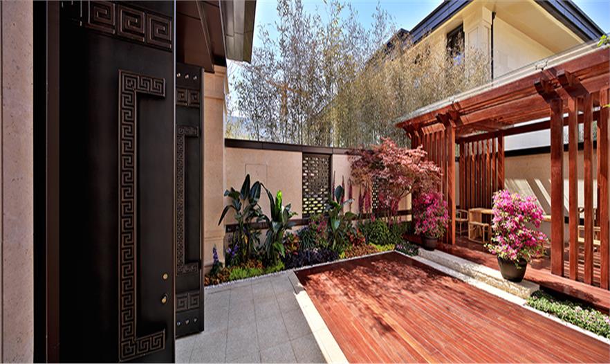 精髓是舊,發(fā)展是新。何為精髓是舊?對(duì)于傳統(tǒng)新中式的認(rèn)知,強(qiáng)調(diào)軸線、空間遞進(jìn)、、曲徑幽深等,這些術(shù)語(yǔ)界定了傳統(tǒng)中式的術(shù)法;聚焦新中式項(xiàng)目作為特定環(huán)境特定歷史時(shí)期的一個(gè)產(chǎn)物,具有非常強(qiáng)“新與舊”的商品屬性,為滿足不同客源的需求,在同質(zhì)化的經(jīng)營(yíng)中,設(shè)計(jì)師需要從多元的角度去解讀設(shè)計(jì)方向和空間亮點(diǎn)。在基礎(chǔ)骨架較好的優(yōu)山美地項(xiàng)目上延展出“新”的詮釋,是把它做成一個(gè)當(dāng)下截然不同的產(chǎn)品,還是只是機(jī)械地在一些元素或者裝飾上變化?笛東團(tuán)隊(duì)尋找到一個(gè)“和而不同”的平衡點(diǎn)。保留傳統(tǒng)院落道、街、坊規(guī)制,在花木扶疏的寬坊靜巷中,假山、亭臺(tái)、抱鼓石和影壁墻雕刻訴說(shuō)著中式文化之魅。不惜重金重現(xiàn)蘇州園林的“御道朱門書(shū)香第,兩街四坊花襲人”意境,但又巧妙借由設(shè)計(jì)融合禪意山水,突破舊式藩籬,全新演繹東方語(yǔ)境下的人文墅居生活。